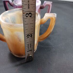 Excellent used clean condition, just used as decor never been used. Please scroll picture for more details. Vintage 2pcs Slag Glass Imperial Caramel Brown and Purple Small Toothpick Holders. Approx. measurement 2.5in x 2in. Pet and smoke free home.