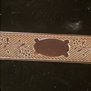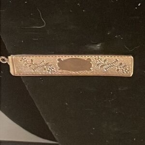 Vintage 2” x 0.25” engravable gold tone with floral design tie clip/clasp/bar