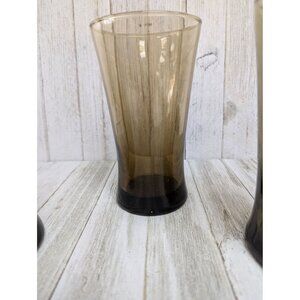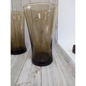 Elegant vintage Anchor Hocking tumblers in a smokey brown shade, perfect for any occasion. These timeless drinking glasses are a charming addition to your glassware collection, blending classic design with durable quality.