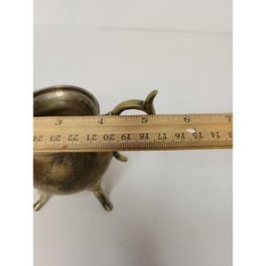 Vintage 3" Brass Silver Plated Lining Claw Feet Horn Handles Cauldron Decor