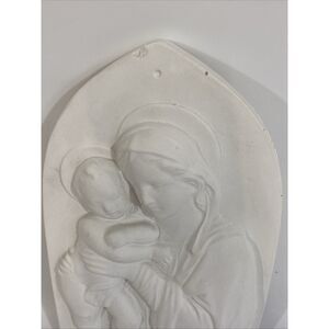 Vintage 3 Dimensional Plaster Wall Plaque Mother Mary & Baby Jesus Catholic 9.5”