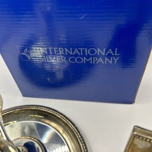 This vintage vanity set from International Silver Company includes a beautiful vase, ornate frame, and mirrored tray. The pieces are carefully crafted from silver plate and boast intricate details that are sure to add a touch of elegance to any room.