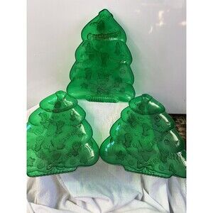Gently used Vintage 3 PC plastic Christmas Serving Tray Set of 3 green Christmas tree trays. Great for cookies, charcuterie, snacks ect. Ships from smoke-free home. Minor wear along the edges, no cracks. Reusable.