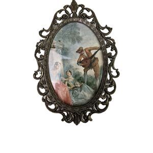 Vintage 3 Piece Framed Prints Set Ornate Oval Brass Filigree Frame