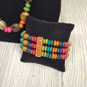 Vintage 3 Piece Jewelry Set, 2 Necklaces & Bracelet Beads Tiered Granny