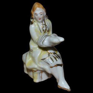 This set is in good condition. Will notice crazing lines due to age. Under the rim of trinket box piano there is some roughness..