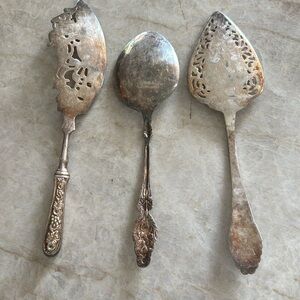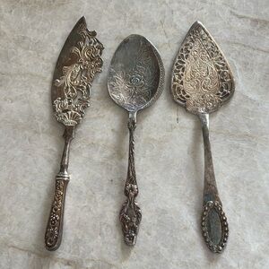 Vintage 3 Piece Set Large 11" Serving Utensils No Markings Various Brands