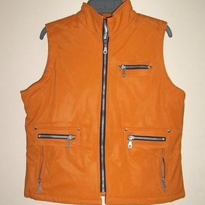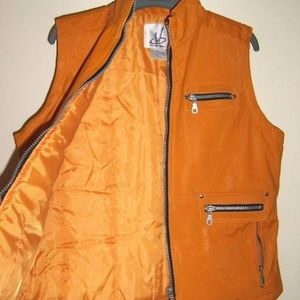 True Vintage Highway Sport Orange Waterproof Water-Resistant 3 Pockets 6 Zipper Jacket Coat Vest Top Sz M.