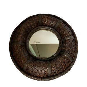 Vintage 3 Rattan Vintage Galley Mirrors 10” Dark Brown Coastal Beach Boho