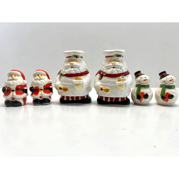 Vintage 3 Sets Christmas Salt & Pepper Shakers Snowmen Santa Chef Pair Ceramic