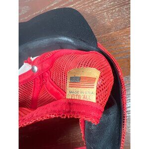 This red snapback hat features Bill Elliott's Coors Melling Oil Pumps design. Made in the USA, it offers adjustable sizing and a breathable mesh back.
