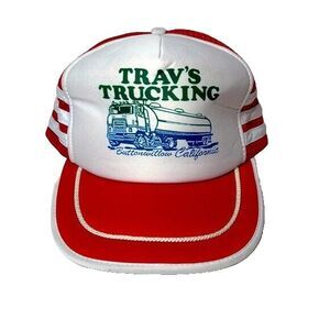 Vintage 3 Stripe Trucker Hat Strap-back Red Mesh Cap Trav’s Trucking