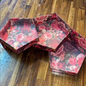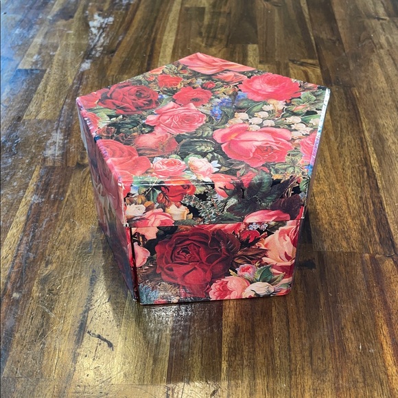Vintage Roses Box with three tiers. Octagon shaped box opens to reveal hidden compartments. In very good condition