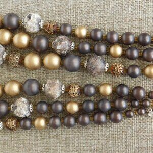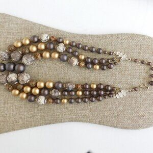 Vintage 3 strand bead necklace. Shades of brown and gold. Has moon glow beads and textured art beads.