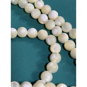 Elegant and versatile, this 30-inch Mother of Pearl beaded necklace adds a refined touch to any outfit, showcasing its natural luster and classic design.
