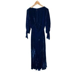 Vintage 30s 1930s Blue Velvet Maxi Gown Dress NRA Tagged Label