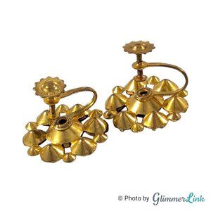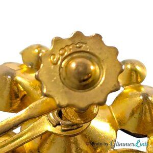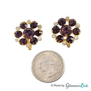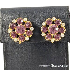 Vintage 30s 40s Coro Purple Rhinestone Flower Gold Tone Screw Back Earrings