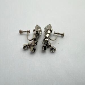 Vintage 30s Art Deco Rhinestone Earrings Silver Tone Screw Back Cascade