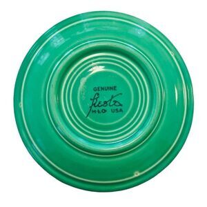 This pretty vintage cup and saucer is in excellent condition. There are no chips or cracks. The saucer is marked but not the cup. The mark and color (called Light Green or Original Green) date this piece to the late 30's. This is one of the original colors from when Homer Laughlin started making Fiestaware. The cup is approximately 3" tall and the saucer is about 6" across.
