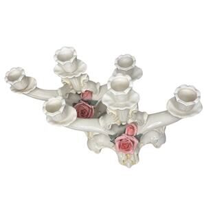 Vintage 30s Karl Ens Pair Porcelain Rose 3 Arm Candlesticks Candelabra Hollywood Regency