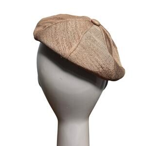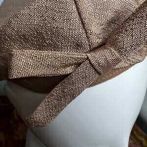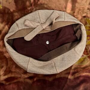 Vintage 30s Metallic Rose Gold Bow Beret Tam Cap Hat Beige Grosgrain Trim