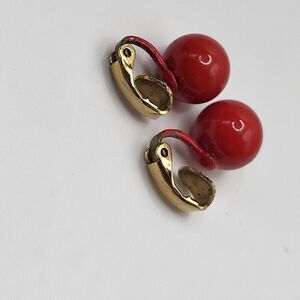 Vintage 30s Red Enamel Ball Earring Clip On 0.5in