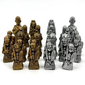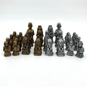 Vintage 32 Piece Replacement Chess Piece Set Egyptian Style Ceramic Glazed