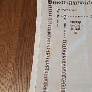 Vintage white tablecloth with beautiful gathered thread design. Measures 32" square. (Had some age spots in, I did get them out but didn't realize there was still one spot on the edge. I used a little bleach water to get the other spots out.) Preowned. In great condition. Non smoking home.