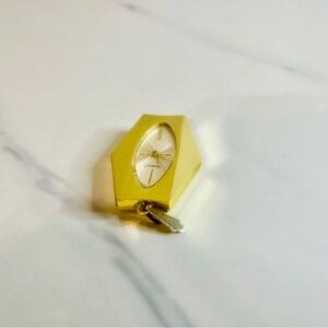 Elegant gold tone watch pendant with a unique hexagonal design with manual wind. Perfect for adding a touch of luxury to any outfit.