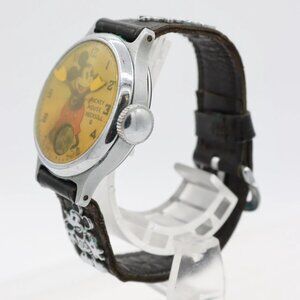 Vintage 32mm Ingersoll Mickey Mouse Men's Wristwatch w Spinning Second Disk