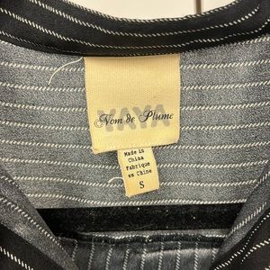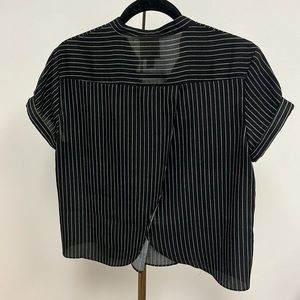 Such a cool shirt. The cuffed sleeves add a certain sexiness to it. Love the simple stripe and boxy look to it. Brand is YAYA and size S.