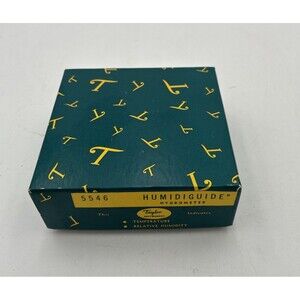 The Vintage 3.5" Square Taylor Temperature Humidity Humidiguide Desktop Thermometer is a collectible scientific instrument dating back to the mid-20th century. Made in the United States, this thermometer features a unique square design and measures both temperature and humidity levels. The Taylor brand is known for its quality and accuracy in measuring instruments, making this piece a valuable addition to any collection of vintage scientific tools.
