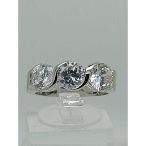 Vintage 3CT 3-Stone Simulated Diamond CZ Engagement Wedding Band Ring Size 8 NOS