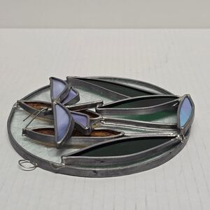 Vintage 3D DRAGONFLY / BUTTERFLY FLORAL STAINED GLASS WINDOW SUN CATCHER.