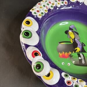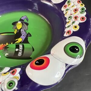 halloween bowl, witch tray, spooky serveware, eyeball decor, vintage halloween, party snack tray, creepy kitchen, retro halloween, 3d candy dish, haunted house prop, novelty bowl, kitsch halloween, blow mold