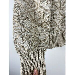 Vintage 3D Knit Grandpa/Dad Sweater 80s/90s Beige Tan Oversized Small S