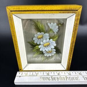 Vintage 3D Layered Glass Hand-Painted Daisy Glass Art Miniature By Barbara