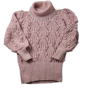 Vintage 3D Open Knit Pink Cotton Sweater Metropolis by Catharine Lover sz Large