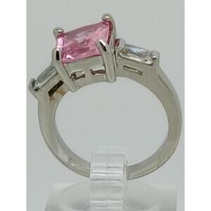 Vintage 3-Stone Gold GP Pink Princess Cut Sim Diamond CZ Engagement Ring