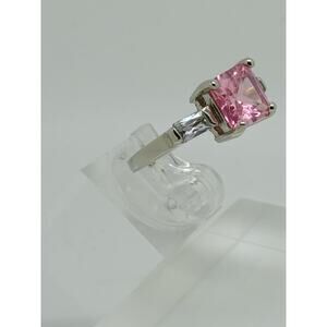 Featuring a beautiful pink Princess Cut center stone measuring 8mm (3.0 carats) and two Radiant Cut side stones each measuring 0.25 carats, this ring sparkles from every angle. The ring measures 9mm at its widest with a 2mm band, making it a bold and eye-catching piece.