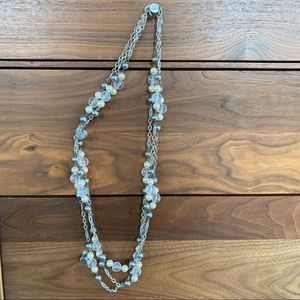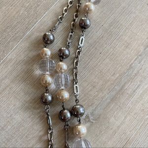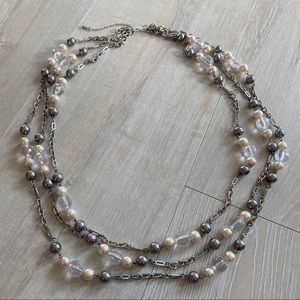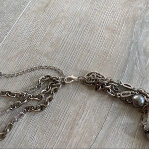 Vintage 3-Strand Silver-Tone Chain Necklace w Pearls + Beads. Lobster Claw clasp. Impressive statement necklace! Purchased at a vintage jewelry boutique in Miami!