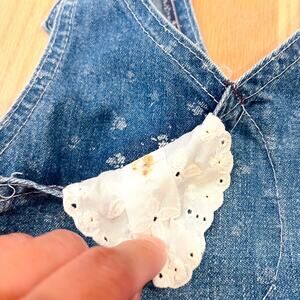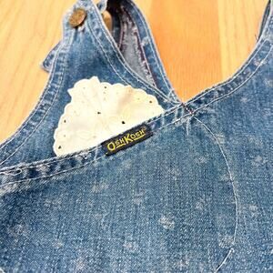 Vintage 3T OshKosh B'Gosh Vestbak Baby Overalls Printed Denim White Lace USA