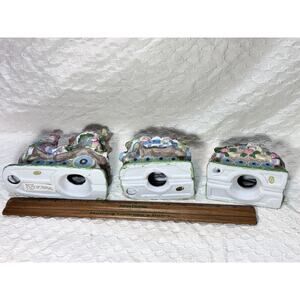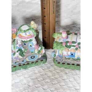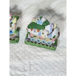 Vintage 3-piece Lighted Easter Train Set Ceramic Holiday Decor Bunny Egg WORKS