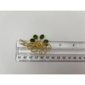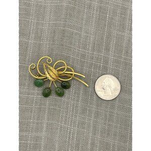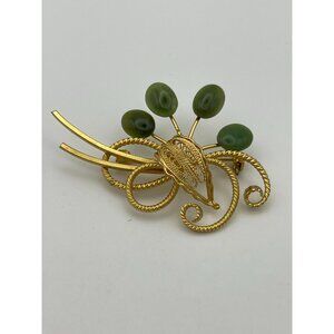 Vintage 4 Faux Jade Gold Tone Brooch 2.5"