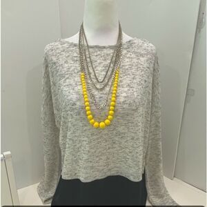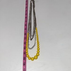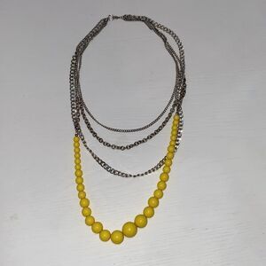 Vintage 4 Layered Bib Beaded Necklace Yellow Beads Silver Tone Necklaces