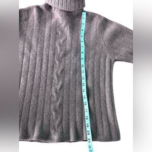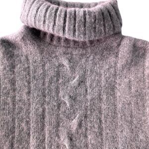 Beautiful soft cashmere sweater, 4 ply super thick and warm, turtle neck, cable design in front. XS measurements in photos, no apparent flaws. Color is a soft beige with brown tones. No tags