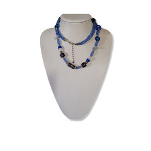 Vintage 4 strand handmade, Blown Glass Glasswork Beaded Necklace 36"