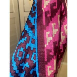 Sally Gee brand made between 1942-1959, WPL #13407. Fuchsia pink maroon turquoise cream colors.