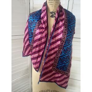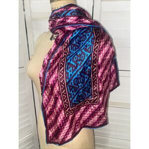 Vintage 40s 50s 100% Silk Scarf 52” x 14” Made In Japan Hand Rolled Hem