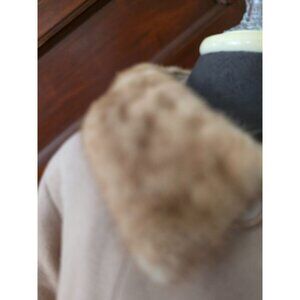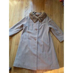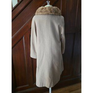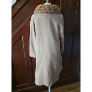 Vintage 40s 50s Beige Coat With Mink Fur Collar 100% Genuine Cashmere